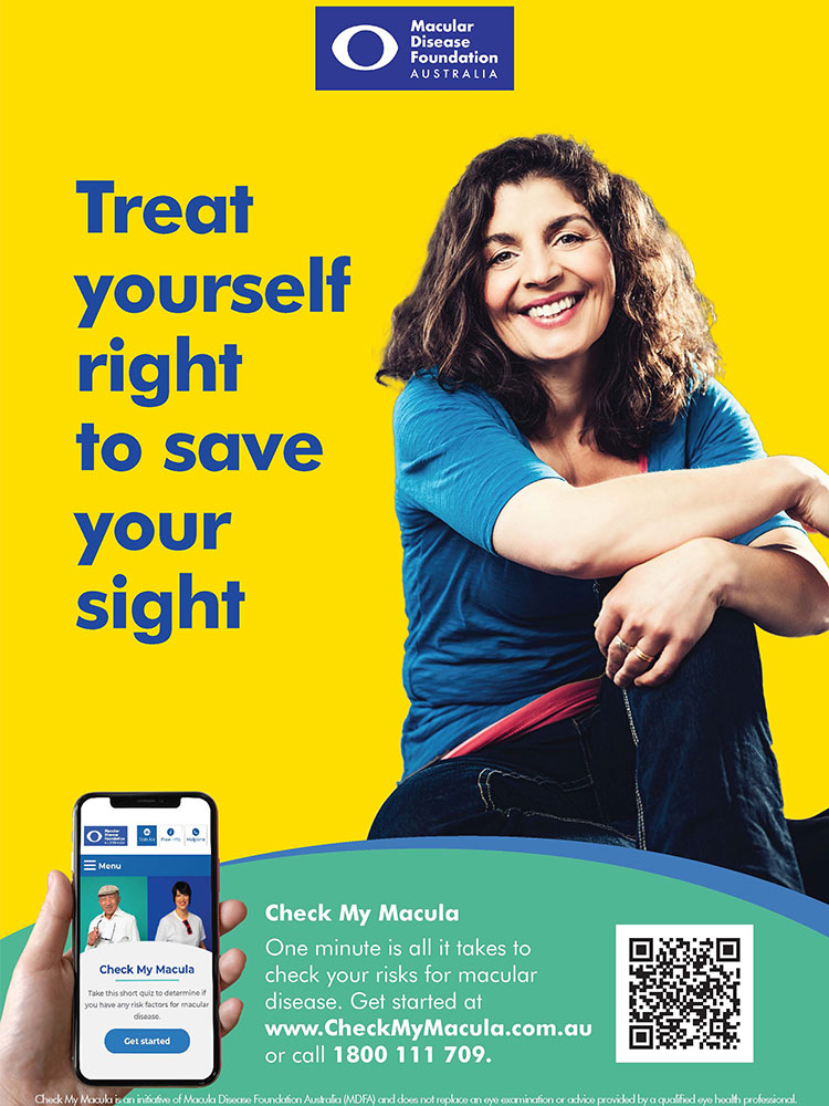 Check My Macula (www.CheckMyMacula.com.au) is MDFA’s online quiz, designed to raise awareness of the risk factors for macular disease.